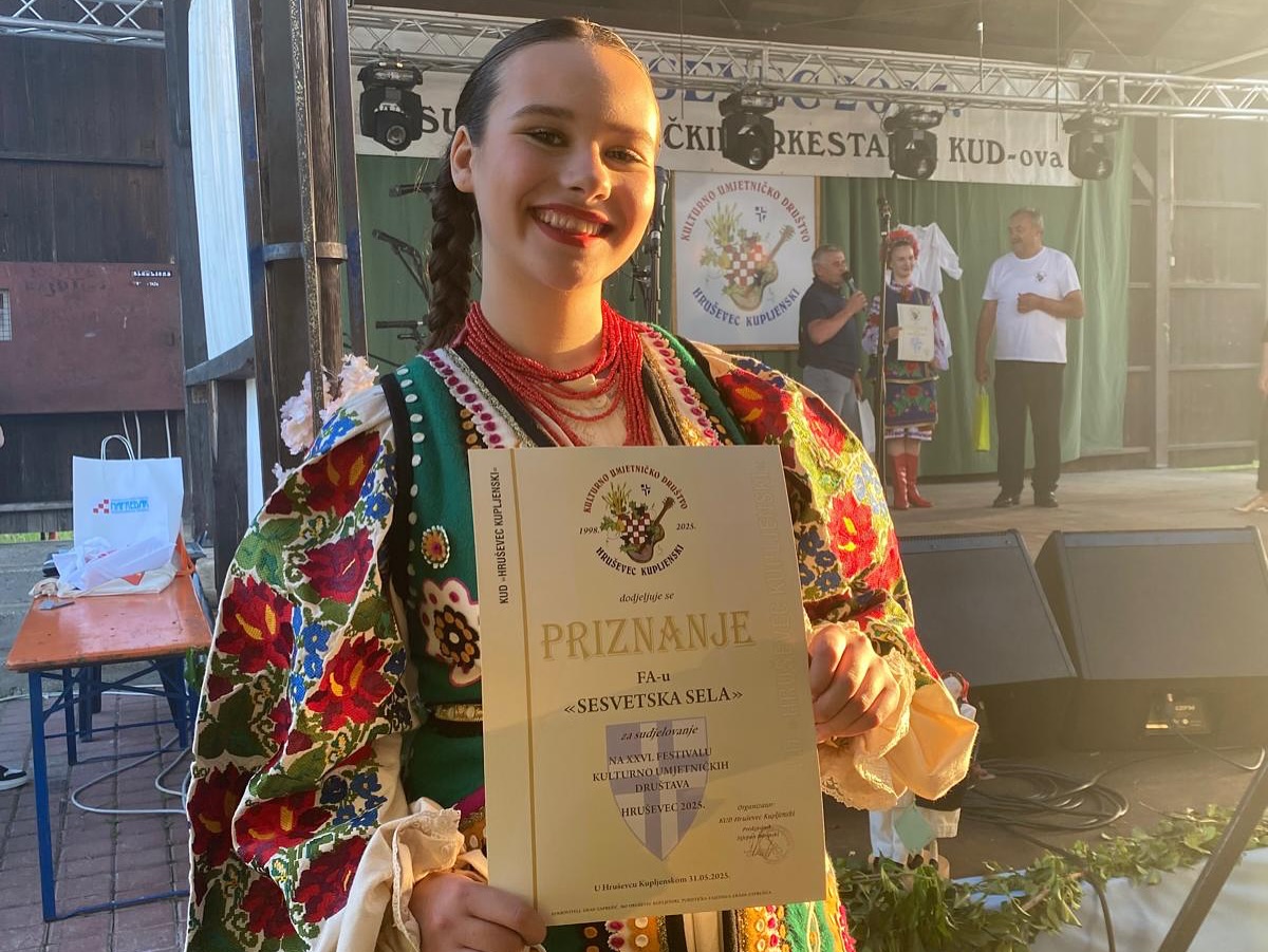 Posebno smo ponosni na našu Anđelu Crnjac, koja je osvojila prvo mjesto u izboru za najljepšu sudionicu festivala, predstavljajući nošnju Sesvetskog prigorja!